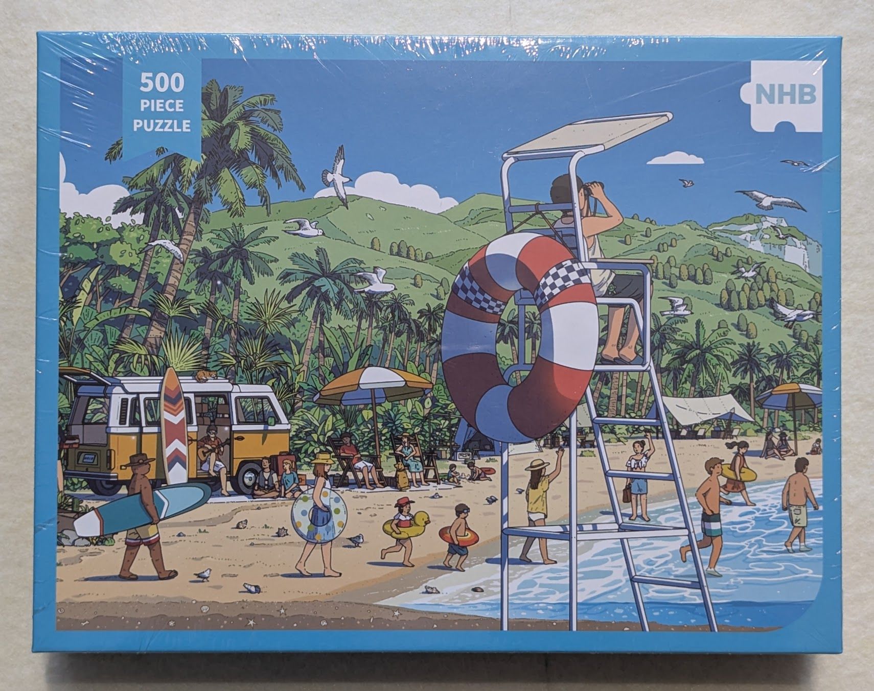 Een sprankelende baai komt tot leven met zwemmers, paddleboarders en kleurrijke opblaasbare speeltjes terwijl een strandwacht vanaf de toren waakzaam uitkijkt, met achter het strand een verscholen charmant kustdorpje. Deze puzzel sluit naadloos aan op Naar het Strand (Versie B) om één compleet panoramisch strandtafereel te creëren! Plaats ze naast elkaar voor de volledige kustervaring. Ideaal voor strandliefhebbers en iedereen die droomt van hun volgende uitstapje aan zee. 38cm x 52cm