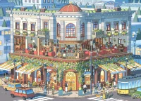 Stap binnen in een groots Europees café waar de tijd een beetje langzamer beweegt. Deze elegante doorsnede onthult een prachtig gebouw met koepel, levendig van het zachte ritme van het dagelijks leven: vrienden die elkaar ontmoeten voor koffie, bezoekers die de krant lezen, en de gesprekken zacht klinkend door sfeervolle kamers. Het warme lamplicht, de architectonische details en weelderig groen creëren een sfeer die zowel bezoekers als puzzelaars uitnodigt om te blijven hangen. 70cm x 50cm